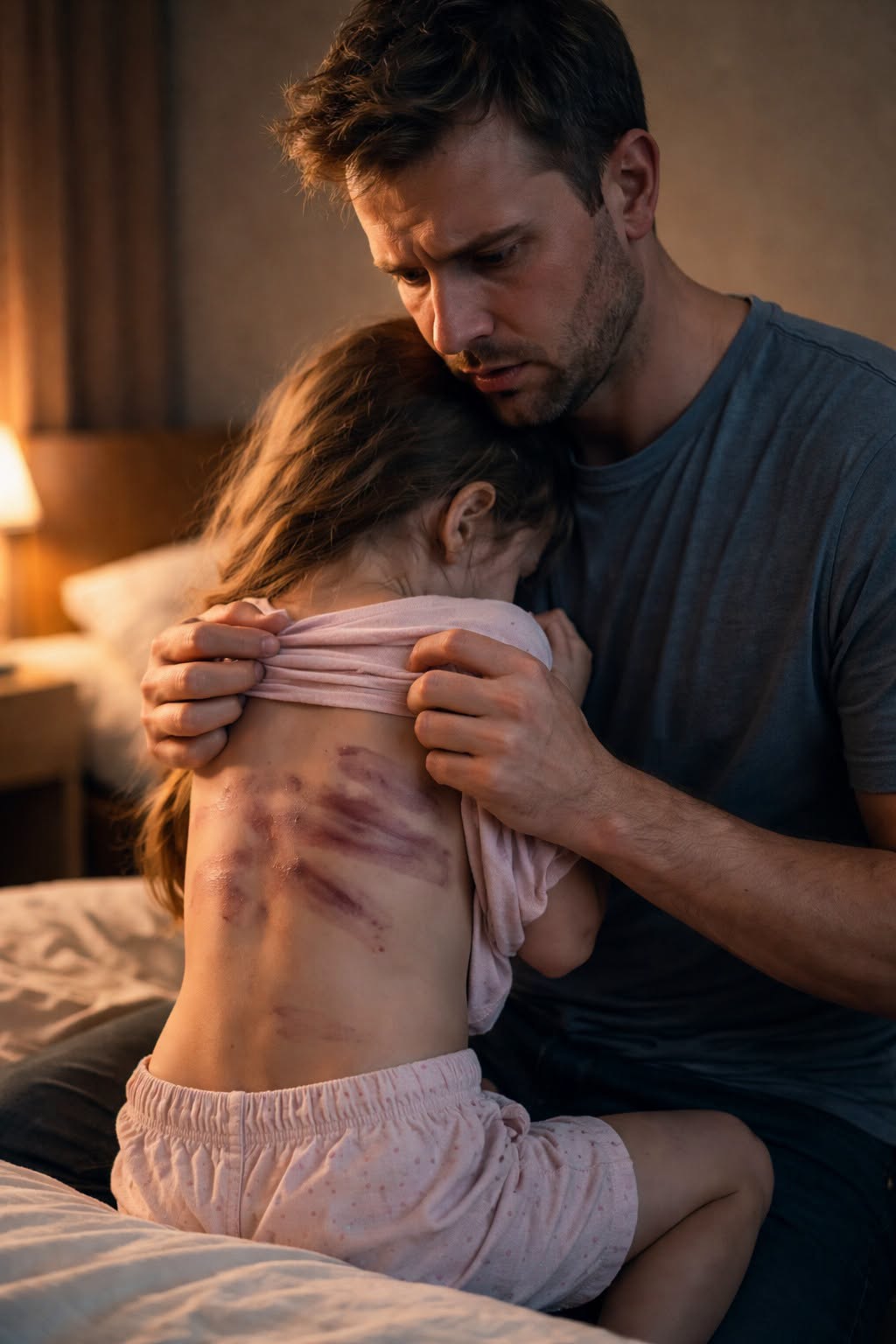 Kada je odlučio da sazna što se zaista dešava, prišao je kćeri i polako joj dodirnuo rame, pokazujući joj da može biti sigurna s njim. Njegova kći je, nakon trenutne neodlučnosti, počela otkrivati ono što je godinama skrivala. Na leđima su bile ozbiljne ozljede koje su ukazivale na nešto mnogo gore od fizičkog bola — to su bile rane koje nisu samo fizički povrijedile, već su nosile i emotivni teret. Ovaj trenutak otkrovenja bio je prekretnica u njihovom odnosu, jer je otac shvatio da su tajne koje su čuvale bol u njihovoj porodici dovele do ove teške situacije. Bilo je jasno da je potrebno mnogo više od fizičkog ozdravljenja kako bi se prevazišle rane koje su se vukle kroz godine neizvjesnosti i straha.