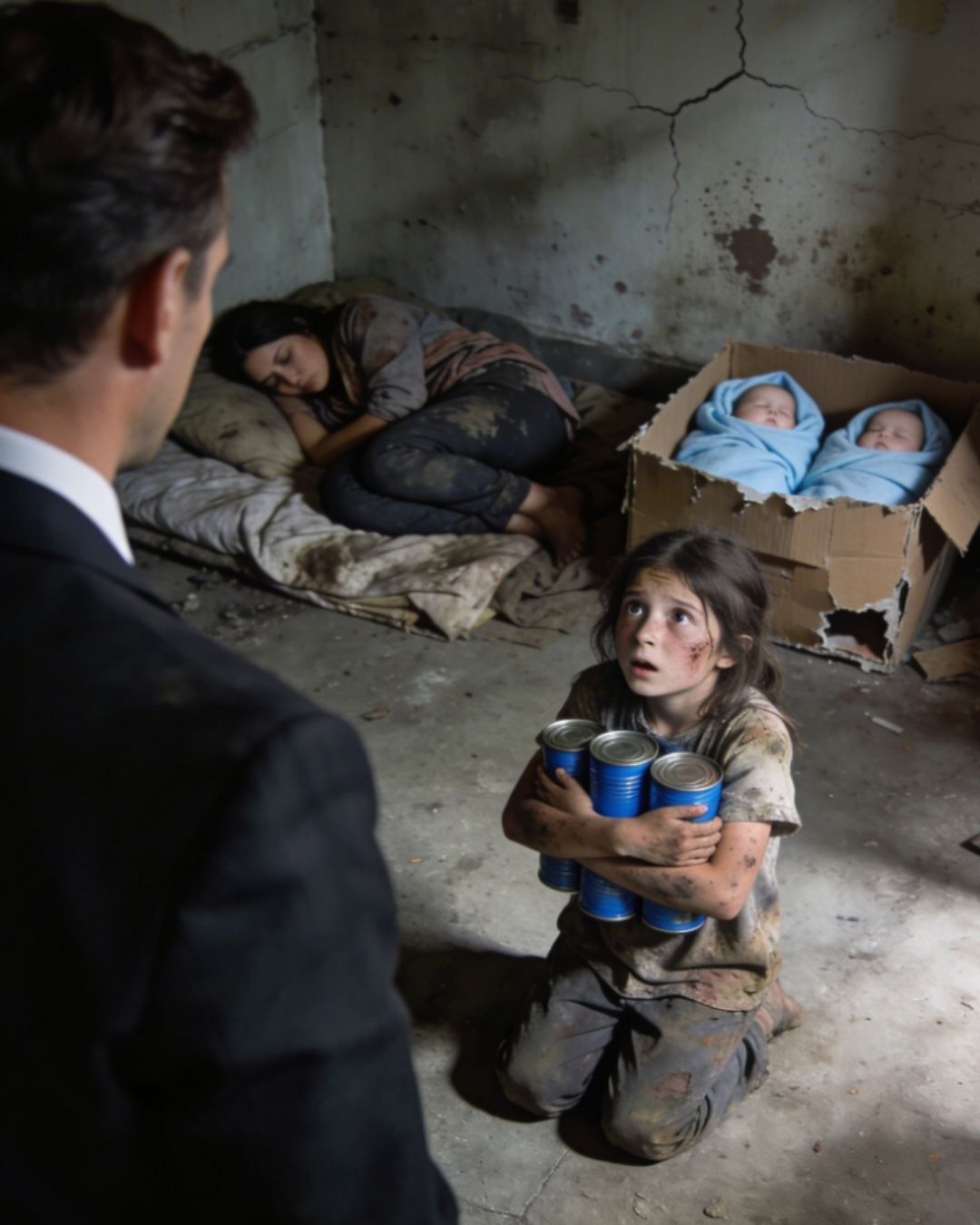 Kada je ušao u kuću, prizor koji je zatekao bio je šokantan. Unutrašnjost je bila vlažna, smrdljiva i zapuštena, a u jednom kutu su se čuli tihi, iscrpljeni plačevi beba. Dve bebe su ležale na starom kauču, slabe i gladne, dok je majka ležala iscrpljena na krevetu. Devojčica je prišla majci i pokušala je probuditi, govoreći: „Mama, donela sam mleko… molim te, probudi se…“ Nažalost, nije bilo odgovora. Ovaj trenutak je razjasnio sve — devojčica nije lagala, ona je danima brinula o svojoj porodici dok je njena majka bila ozbiljno bolesna.