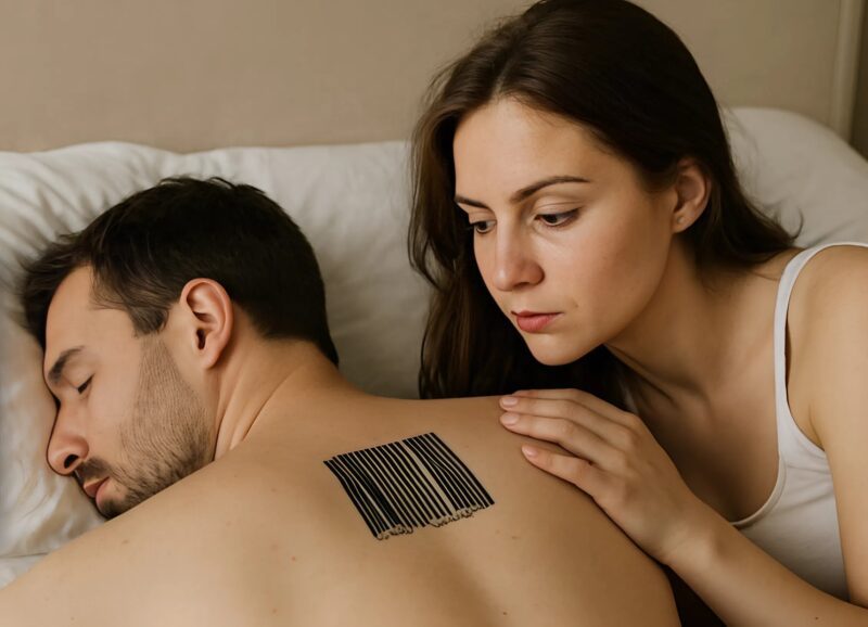 Jedne noći, dok je njen muž spavao, odlučila je da istraži. Njen pogled je pao na neobičnu tetovažu na njegovim leđima. U tom trenutku, njena intuicija je počela da viče; nešto nije bilo u redu. Na prvi pogled, tetovaža je izgledala kao obična slika, ali kada se bolje zagledala, shvatila je da je u pitanju simbol koji je u nju unosio strah. Ovaj neobični simbol, koji je nalikovao na barcode, predstavljao je nešto daleko ozbiljnije nego što je mogla zamisliti. Da li su cehovi koje su plaćali za sreću bili preveliki?
