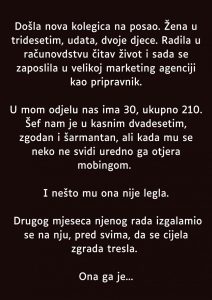 U današnjem članku vam donosimo priču o tome kako je dolazak nove kolegice na posao promenio dinamiku u kancelariji. Njena reakcija na napad šefa bila je potpuno suprotna od svega što bi iko od nas očekivao, a njen hrabar postupak ostavio je snažan utisak na sve nas.