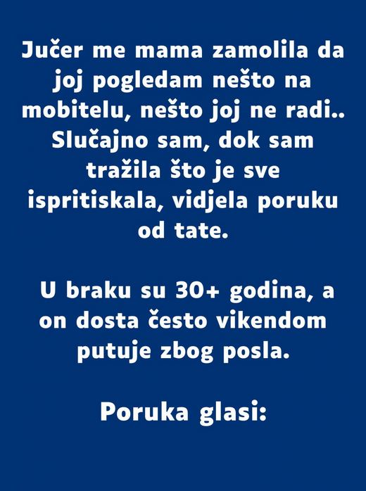 Te reči probudile su u njemu gotovo suze – ne samo zbog sadržaja, već zbog svesnosti da nakon više od tri decenije zajedničkog života, među njegovim roditeljima i dalje postoji istinska povezanost.