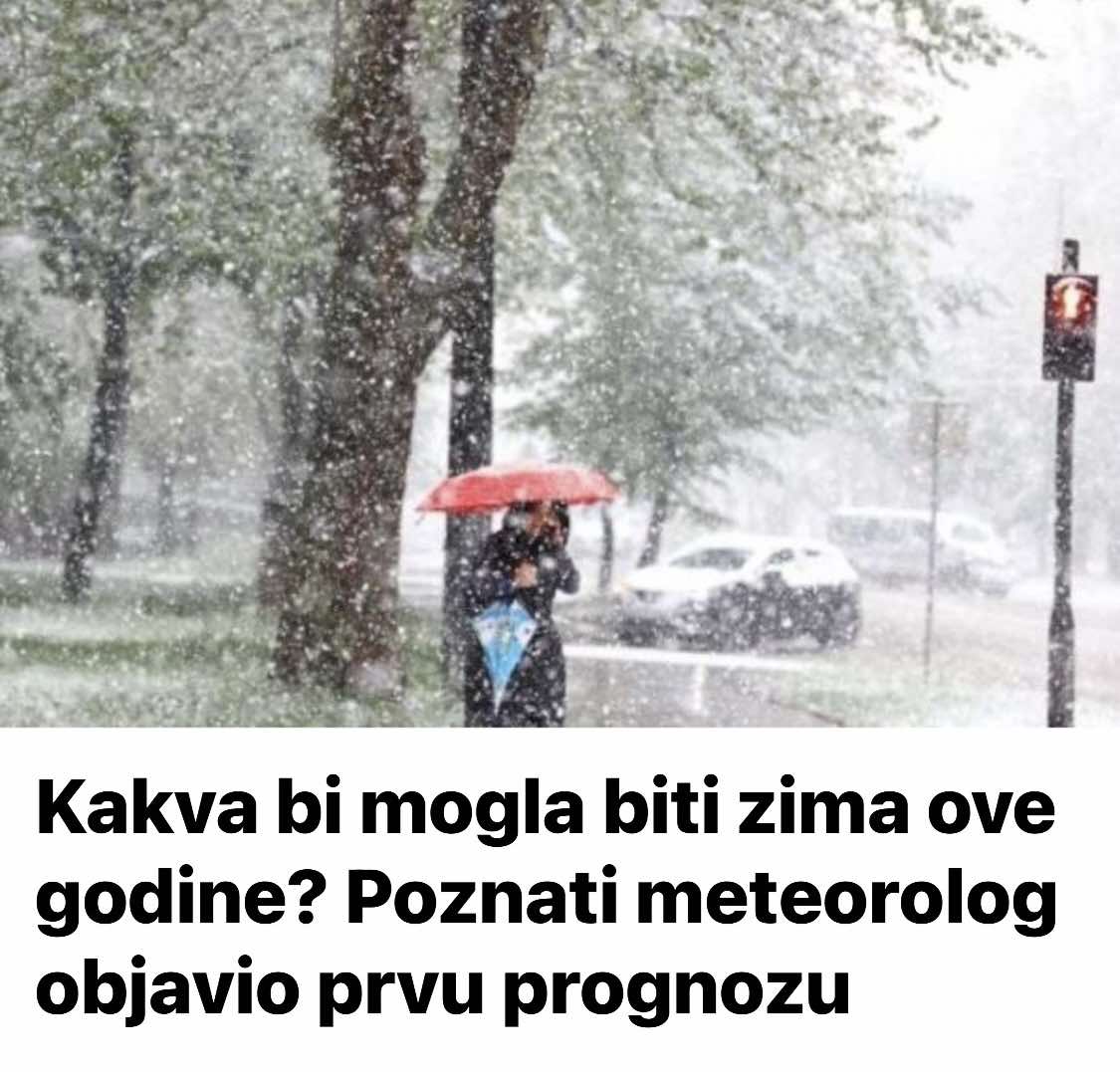 Svoju prognozu objavio je na Facebooku, a evo što je naveo: „Trenutni podaci o okeanskim i atmosferskim faktorima, zaključno sa septembrom 2024. godine, upućuju na to da bi nadolazeća zima mogla biti hladnija od prethodnih, ali i dalje toplija u odnosu na prosjek zadnjih 30 godina.