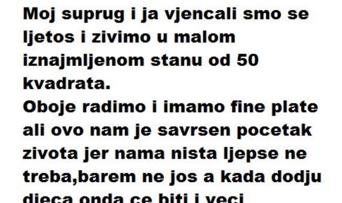 Moj suprug i ja smo se venčali tokom leta, a nakon toga iznajmili mali stan od 50 kvadrata. Bilo je to sasvim dovoljno za nas, jer smo oboje imali poslove i solidne plate. Počeli smo naš zajednički život s puno optimizma i vjerom da ništa više nije potrebno – barem ne u tom trenutku. Čak i kad dođu deca, razmišljali smo, ni veći stan nam neće biti potreban.