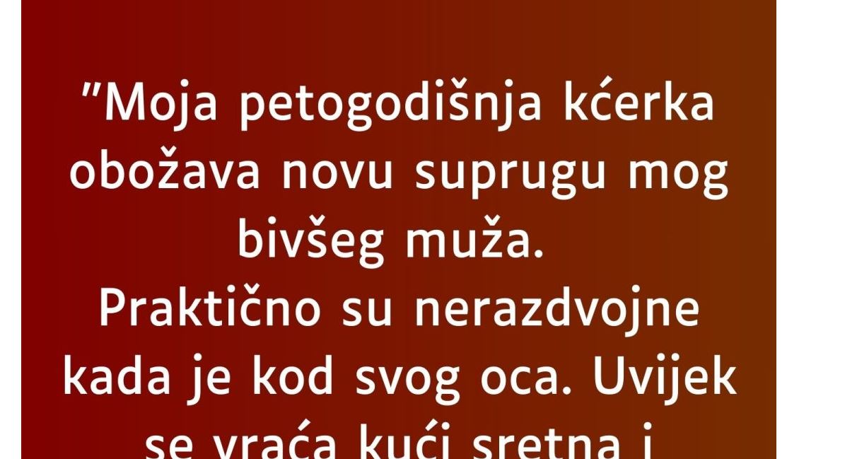 Jedna majka, čija je kćerka uobičajeno srećna kada se vrati od oca, iznenada je doživela neugodno otkriće. Kćerka je, nakon što je provela vreme sa novom partnerkom njenog bivšeg muža, podelila neobičnu situaciju koja je izazvala zabrinutost. Naime, ona je ispričala kako je Ema, nova partnerka njenog oca, ribala njena leđa u kadi i spomenula kako bi trebala više da se kupa kod kuće. Ova rečenica je majci bila ne samo čudna, već i uznemirujuća. Zapanjena reakcijom svoje kćerke, majka je odlučila da odmah pozove bivšeg muža, ali je on ignorisao njenu zabrinutost, tvrdeći da pretjeruje.