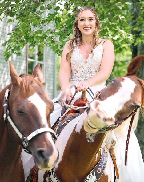 Tog dana, u bijeloj vjenčanici, sjela je na leđa svog voljenog konja Cricketa, dok je pored nje bio i Dutch. Fotografi su zabilježili trenutke koji su spajali ljepotu, tugu i radost, pretvarajući ih u priču koju je nemoguće zaboraviti. Fotografije nisu bile samo estetski upečatljive – one su nosile snažnu simboliku, kao da se kroz konje u sam čin vjenčanja utkala i očinska prisutnost.