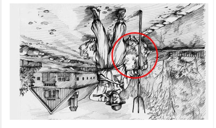 Međutim, jedinstvenost ove ilustracije leži u prisutnosti dodatne figure skrivene unutar nje, koju većina gledatelja često ne primijeti na prvi pogled. Umjetničko djelo predstavlja žensko lice koje je vješto uklopljeno u okolne elemente, čime se stapa s krajolikom. Tek minucioznim promatranjem i pomicanjem fokusa počinje se nazirati žensko lice postavljeno uz lik seljanke. Crte njezina lica stvorene su mješavinom sjena, linija sijena i obrisa drveća.