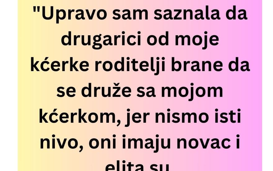 Nedavno sam saznala nešto što me duboko šokiralo i potreslo. Naime, roditelji djevojčice koja je prijateljica moje kćerke zabranili su joj da se druži sa njom. Razlog za ovu odluku je zaista iznenađujuć: navodno nismo „isti nivo“. Pokušala sam da shvatim njihovu logiku, ali nisam mogla da se otmem utisku da se sve svodi na jednu veoma problematičnu ideju – da društveni status i novac određuju ljudsku vrednost. Najzanimljiviji, i pomalo apsurdni, deo priče je to što otac te djevojčice radi kao automehaničar, a njegova porodica se smatra elitom. Ovaj stav izaziva mnoga pitanja o tome šta znači „biti elitista“ i koji su stvarni kriterijumi za određivanje nečije vrednosti u društvu.