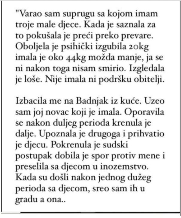 Danas vam predstavljamo životni narativ koji je po objavljivanju na društvenim mrežama izazvao značajan val kritika na račun autora ovog prikaza. Suočavanje s prošlošću s takvom transparentnošću zahtijeva značajnu hrabrost, osobito kada nosi težinu kajanja. Iako je prošlost nepromjenjiva, usvajanje svjesnog, odgovornog i poniznog stava prema njoj može olakšati novi početak, od čega ćemo imati koristi ne samo za sebe, već i za one koji su pogođeni.