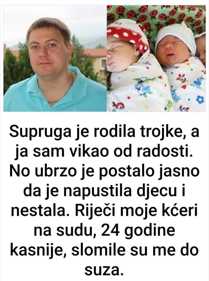 Godine prolaze, a otac se suočava sa vlastitim demonima. Nakon 24 godine, konačno dolazi trenutak istine—suđenje gdje će njegova supruga morati objasniti svoj nestanak. Očekivanja su bila visoka, a emocije su bile neizbježne. Kćerke, sada odrasle žene, odlučile su podijeliti svoja sjećanja i gubitke koje su pretrpjele tokom svih tih godina. Suze koje su padale u sudnici nisu bile samo znak tuge, već simbol snage koju su pronašle u sebi. Njihova hrabrost da se suoče s prošlošću bila je inspirativna, a otac je bio ponosan na njihovu otpornost. Na suđenju se raširila atmosfera emotivne napetosti; svaka riječ, svaka izjava bila je težak teret za sve prisutne. Iako su se suočili sa mnogo bola, kćerke su znale da će, bez obzira na ishod, njihova porodična veza ostati netaknuta.