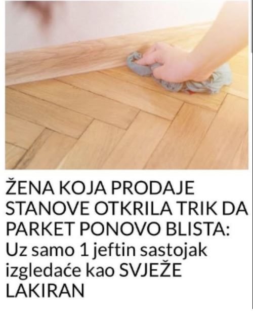 Proces čišćenja stanova, uključujući kuće i stanove, obično zahtijeva cijeli dan kako bi se osiguralo da je svaki aspekt temeljito obrađen. Nedavno se na internetu pojavio račun o ženi koja je otkrila metodu za postizanje briljantnog sjaja parketa pomoću jednog jedinog sastojka. Koji je postupak vraćanja sjaja starom parketu? Rješenje zahtijeva samo jednu isplativu tvar.